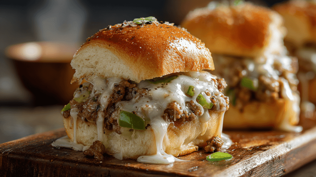 Are you searching for quick and easy dinner recipes that don’t sacrifice flavor? These Ground Beef Philly Cheesesteak sliders are about to become your new weeknight favorite! Packed with seasoned ground beef, sautéed peppers and onions, gooey mozzarella cheese, and a heavenly garlic butter topping, these mini sandwiches deliver all the classic Philly cheesesteak flavor without the hassle of slicing steak.