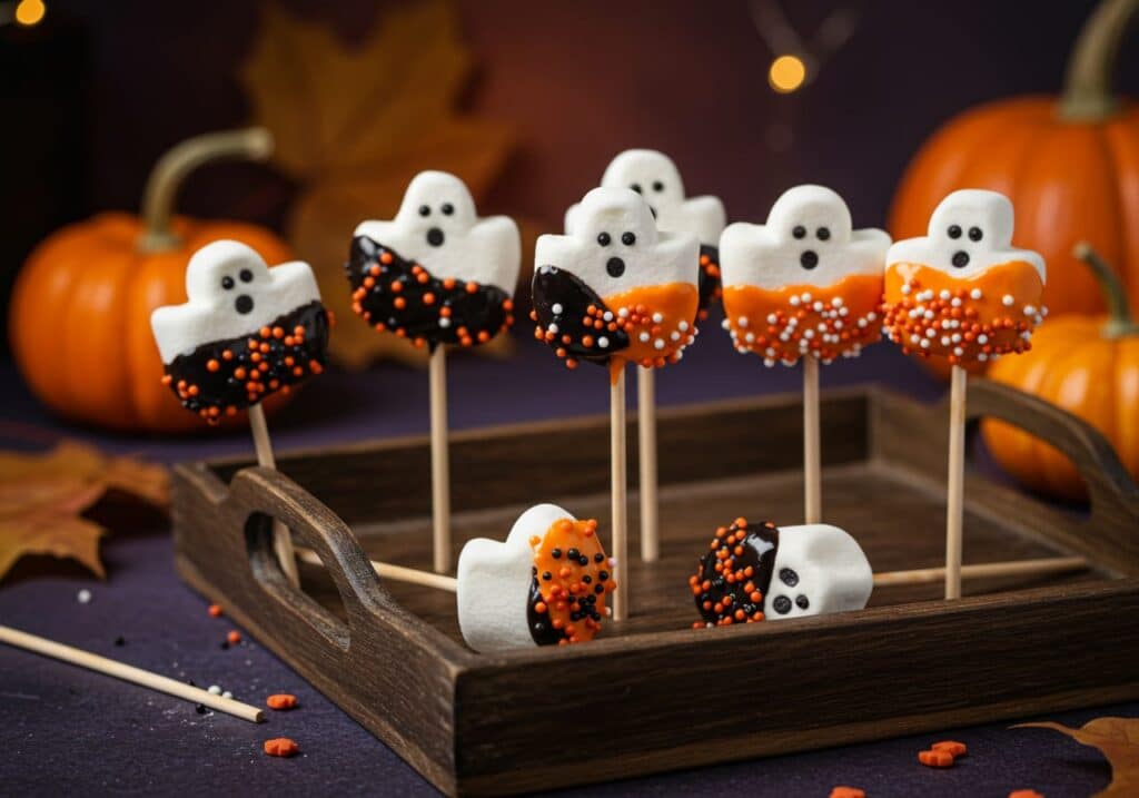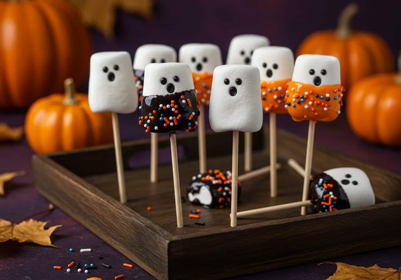 Create fun and spooky Ghost-shaped Marshmallow Pops, perfect for Halloween treats that are easy to make and delightfully festive.
