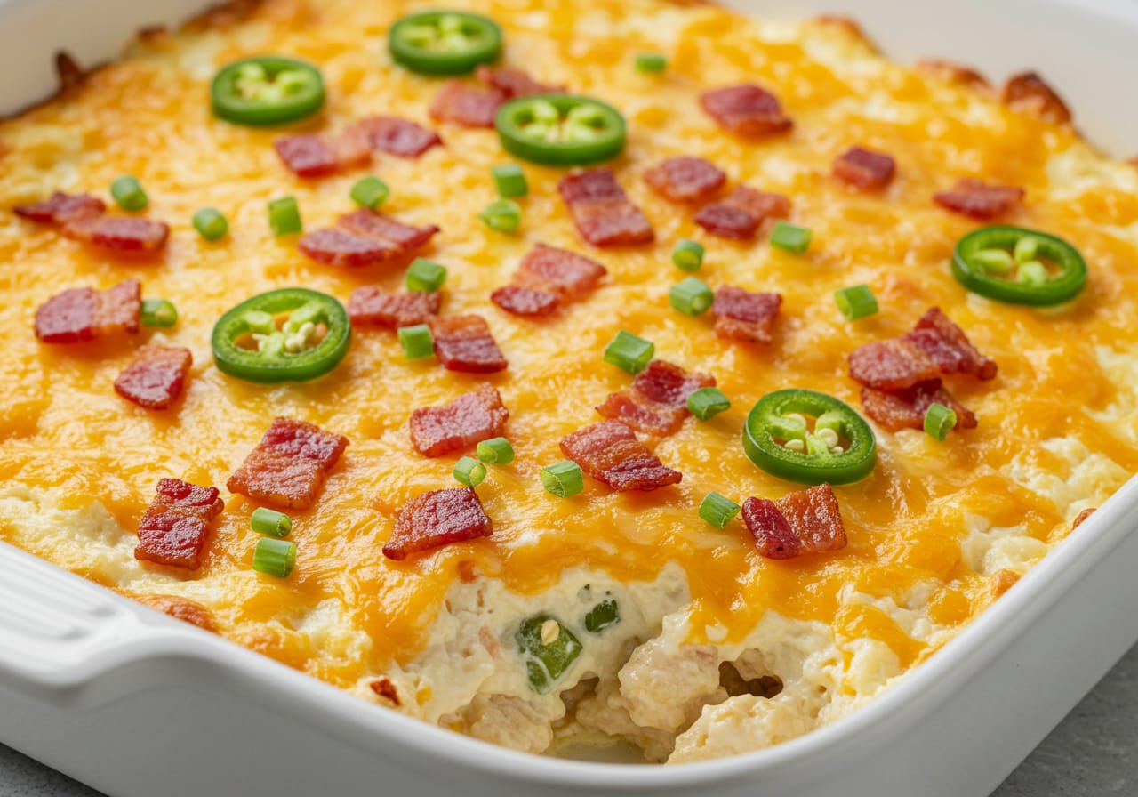 Jalapeno Popper Cream Cheese Chicken is a flavorful dish combining tender chicken, creamy cheese, smoky bacon, and spicy jalapenos for a deliciously comforting meal.