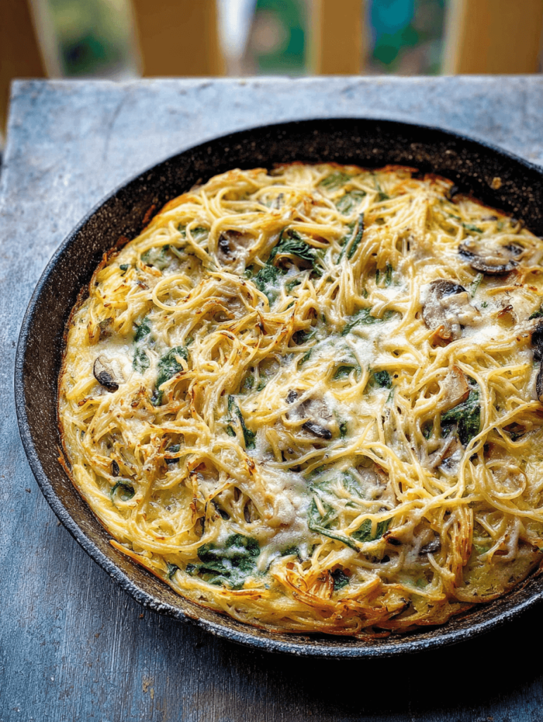 Transform leftover pasta into a crispy, golden frittata in just 15 minutes. This budget-friendly recipe uses simple ingredients to create a delicious egg dish perfect for breakfast, lunch, or dinner. Works with any sauced or plain pasta!