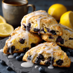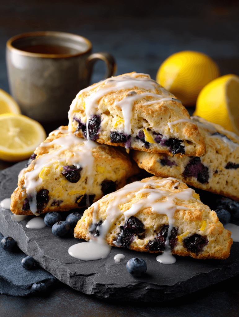 Tender, flaky scones bursting with fresh blueberries and bright lemon flavor, finished with a sweet tangy glaze. Perfect for breakfast or afternoon tea.
