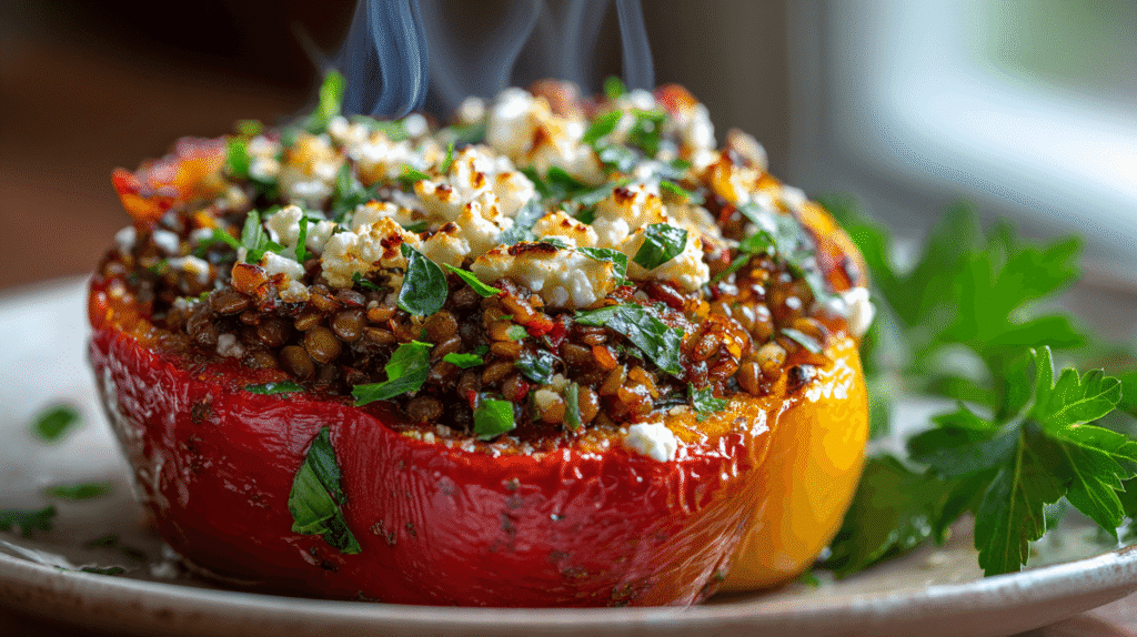The combination of protein-rich lentils, aromatic herbs, tangy cheese, and sweet roasted peppers creates a meal that satisfies both your nutritional needs and your taste buds. It’s proof that healthy eating doesn’t mean sacrificing flavor or satisfaction.