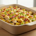 Loaded Potato Ranch Chicken Casserole is a hearty and comforting dish featuring tender chicken, Yukon gold potatoes, smoky bacon, and creamy ranch seasoning baked to perfection. A perfect meal for family gatherings or weeknight dinners.