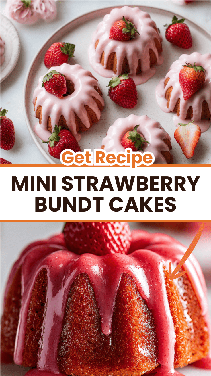 PrintMini Strawberry Bundt Cakes : Easy Strawberry Shortcake Aesthetic Dessert Recipe