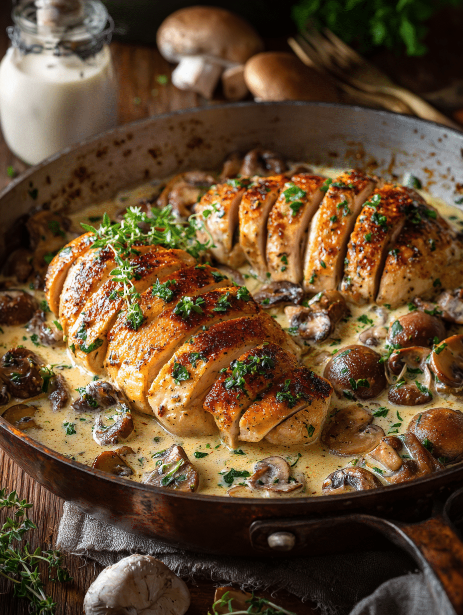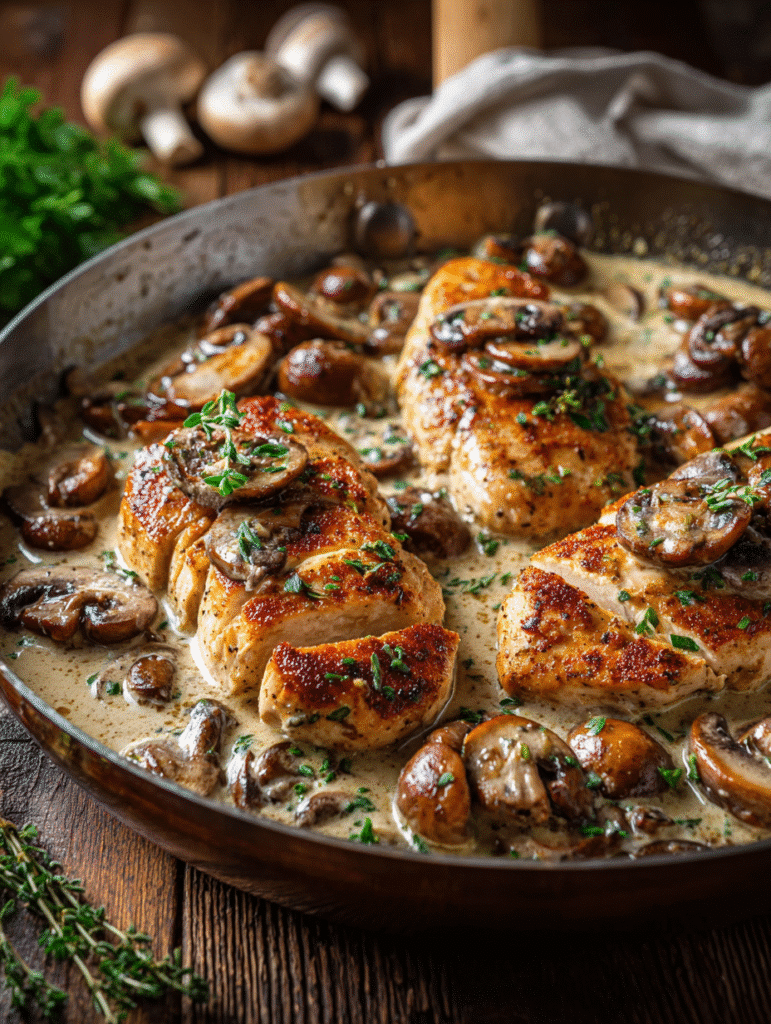 When you’re craving juicy chicken and earthy mushrooms in a rich, creamy sauce, nothing beats this Mushroom Chicken recipe! Discover how to turn two large chicken breasts into a skillet masterpiece for busy weeknights with only pantry staples and a single pan, you’ll have dinner ready in 30 minutes.