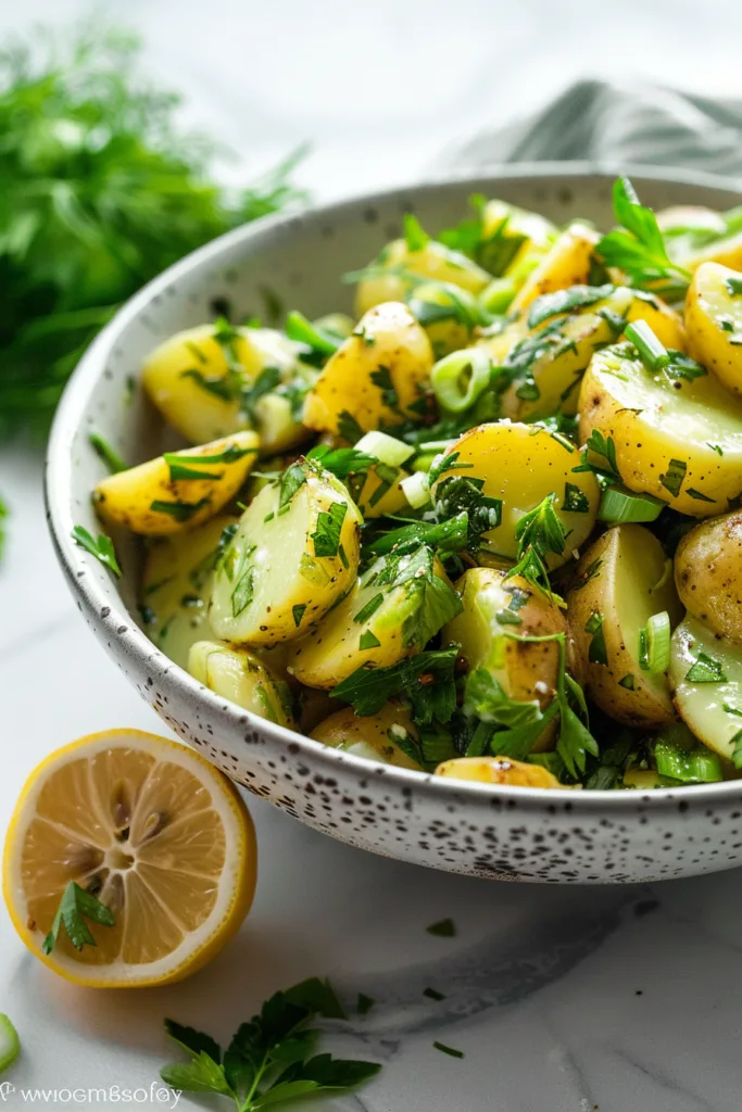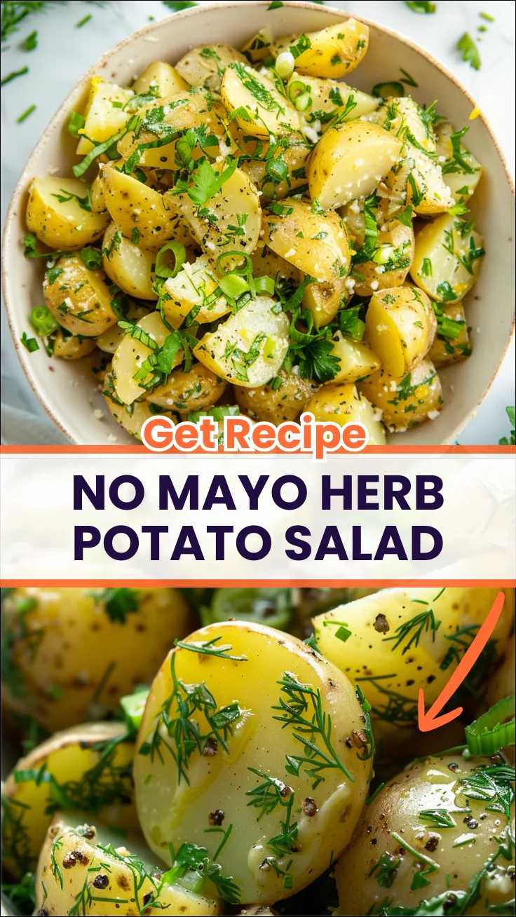 A light, fresh No Mayo Herb Potato Salad made with tender yellow or red potatoes, a bright lemon-Dijon vinaigrette, and a generous mix of fresh parsley, mint, and dill. Perfect for Memorial Day cookouts, Fourth of July BBQs, and summer picnics.