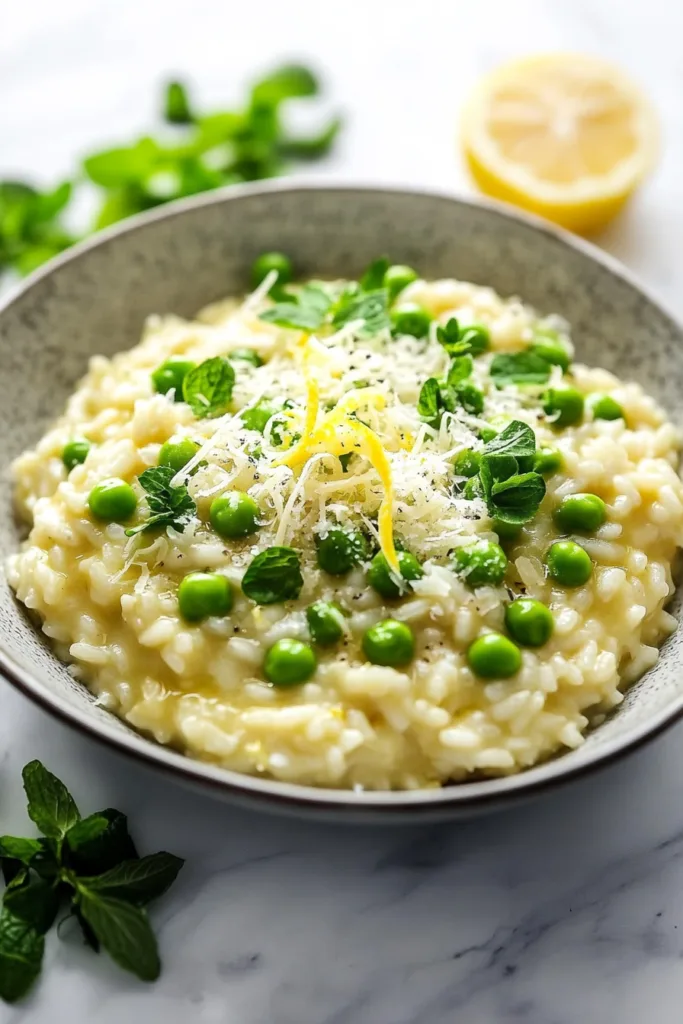 This risotto is more than just a meal it is a celebration of the season. With its vibrant green peas, golden Parmesan richness, and zesty lemon brightness, every bite tastes like spring on a plate. Whether this is your first time making risotto or your fiftieth, this recipe will not disappoint. Give it a try this weekend and let it become your new seasonal staple.