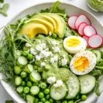 If you are looking for the perfect spring lunch idea, this Pea Arugula Salad is exactly what you need. Packed with vibrant green peas, peppery arugula, crisp radishes, creamy avocado, and protein-rich boiled eggs, this salad is as nourishing as it is beautiful. The homemade creamy dill dressing ties everything together with a tangy, herby finish that will have you coming back for more. Whether you are planning Easter food ideas for dinner, prepping spring party food, or simply craving light and easy spring recipes, this dish checks every box.