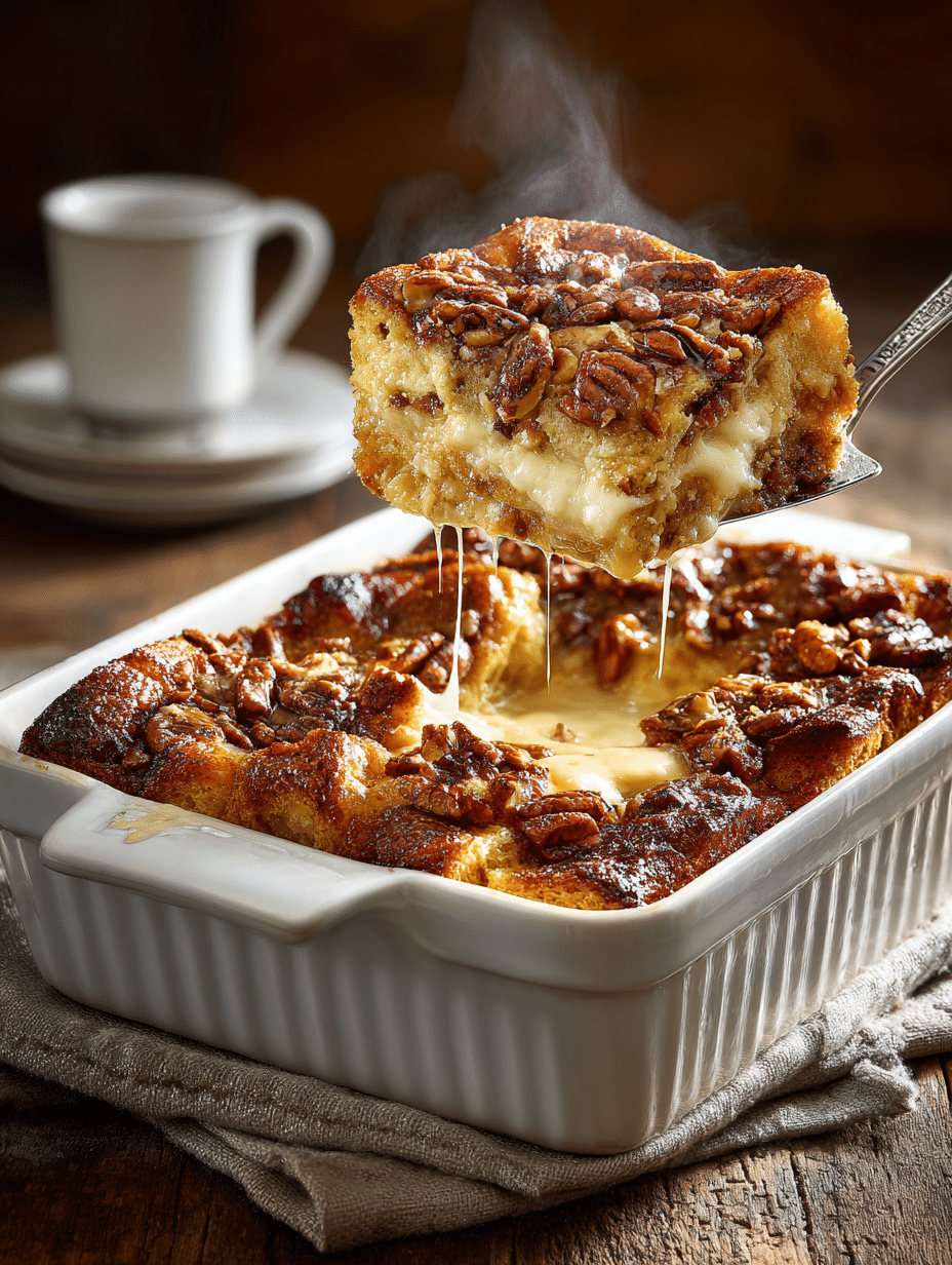 The texture is absolutely divine. The bottom layer stays moist and custard-like, while the top develops a gorgeous caramelized crust thanks to the brown sugar pecan topping. Each bite offers a perfect balance of soft, creamy bread and crunchy, buttery pecans. The flavor profile hits all the right notes sweet but not overly so, rich without being heavy, and wonderfully aromatic with vanilla and brown sugar.