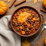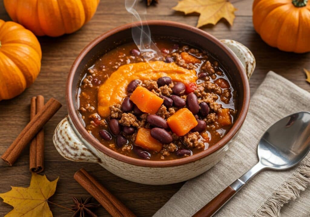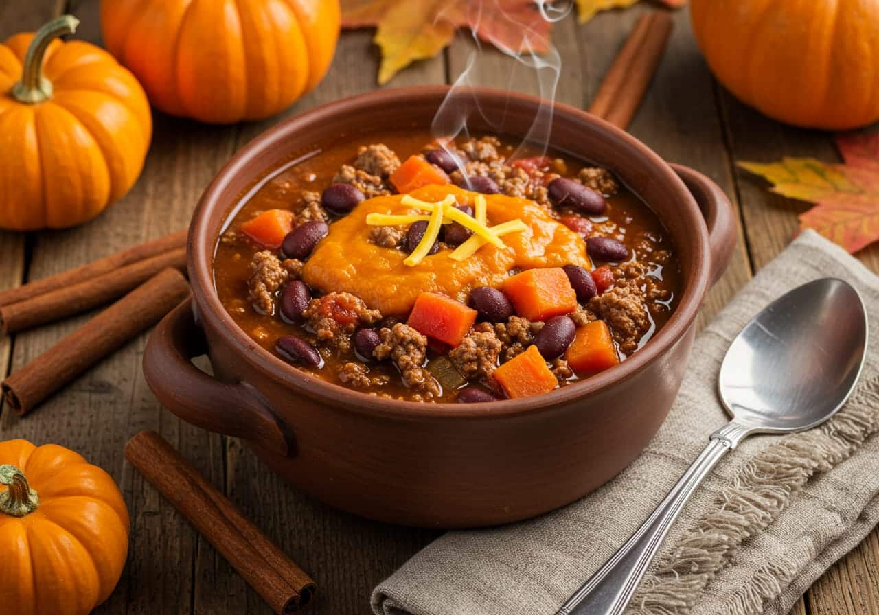 Enjoy a cozy and hearty Pumpkin Chili that blends the sweetness of pumpkin with the bold flavors of classic chili spices.