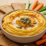 A creamy and flavorful pumpkin hummus that blends the warmth of fall spices with smooth chickpeas. Perfect as a snack, dip, or spread to enjoy all season long.
