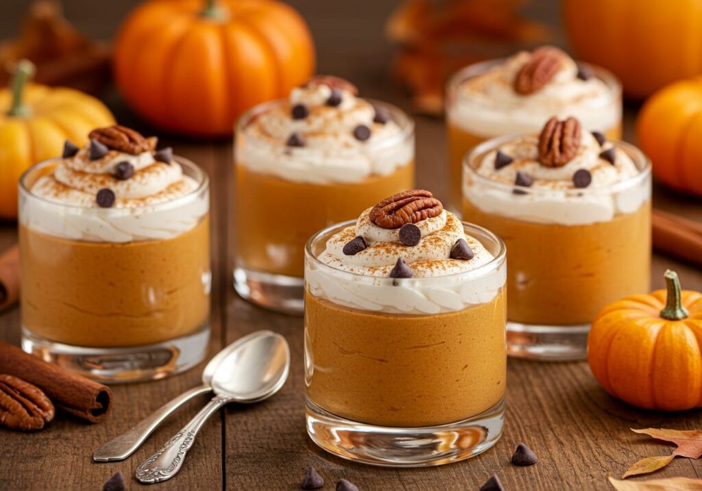 Pumpkin Spice Mousse is a creamy, airy dessert combining pumpkin puree with cream cheese, brown sugar, and pumpkin pie spices, topped with whipped cream and optional garnishes like chocolate chips or pecans.