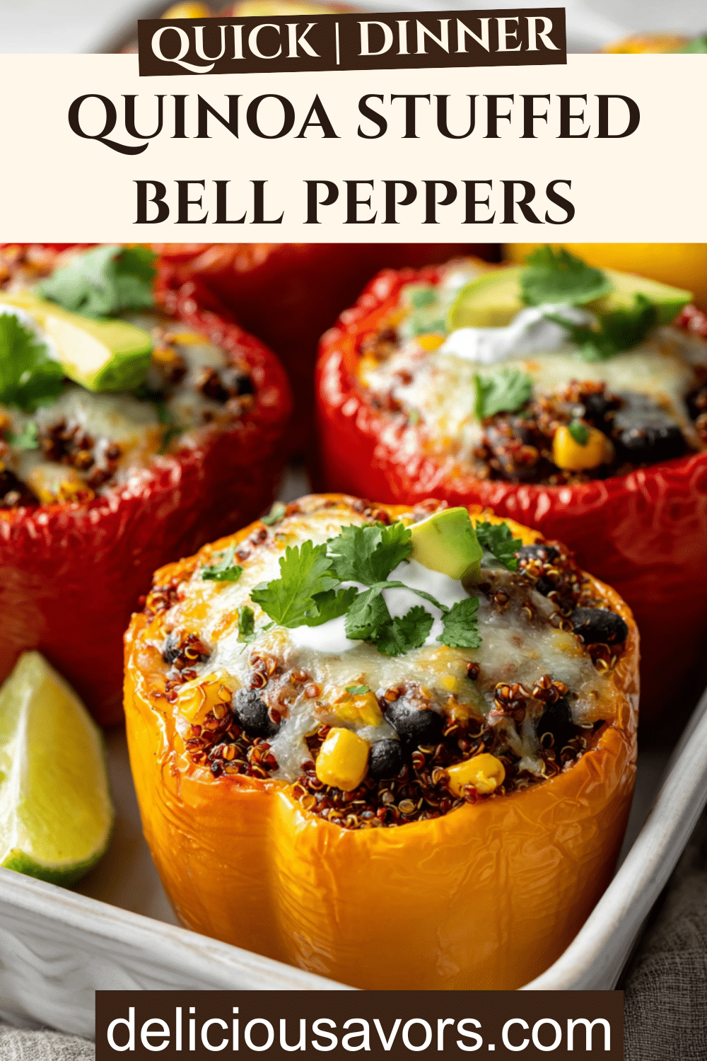 PrintQuinoa Stuffed Bell Peppers : Healthy Family Dinner Under 45 Minutes