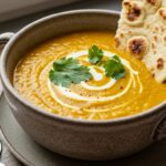 A cozy and nourishing soup made with red lentils, fragrant spices, and fresh vegetables perfect for chilly days.