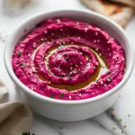 This Creamy Roasted Beet Hummus is a vibrant, silky-smooth dip made with oven-roasted beets, tahini, fresh lemon juice, garlic, and cumin. It is naturally vegan, gluten-free, and perfect for Memorial Day parties, cookouts, picnics, and holiday gatherings. Ready in under an hour with minimal prep.