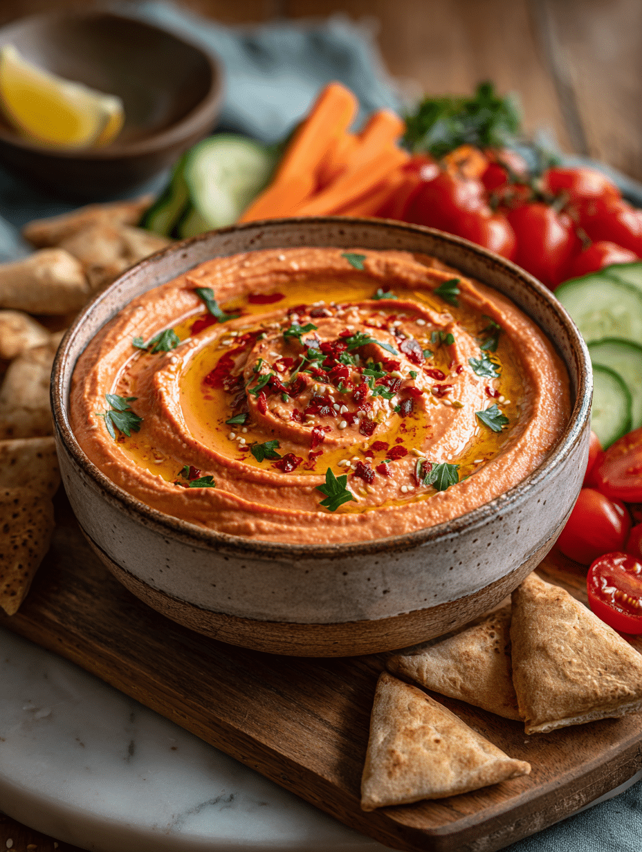 PrintRoasted Red Pepper Hummus: The Ultimate Holiday Appetizer