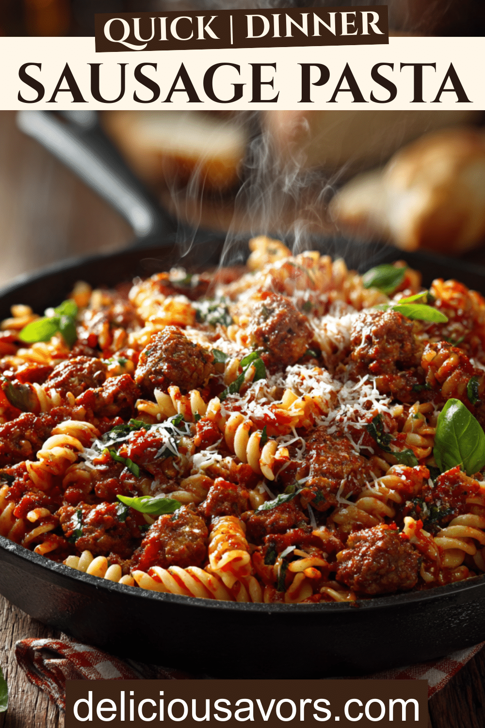 This sausage pasta stores exceptionally well, making it perfect for meal prep or planned leftovers. Let the pasta cool completely, then transfer to airtight containers. It keeps in the refrigerator for up to 4 days.