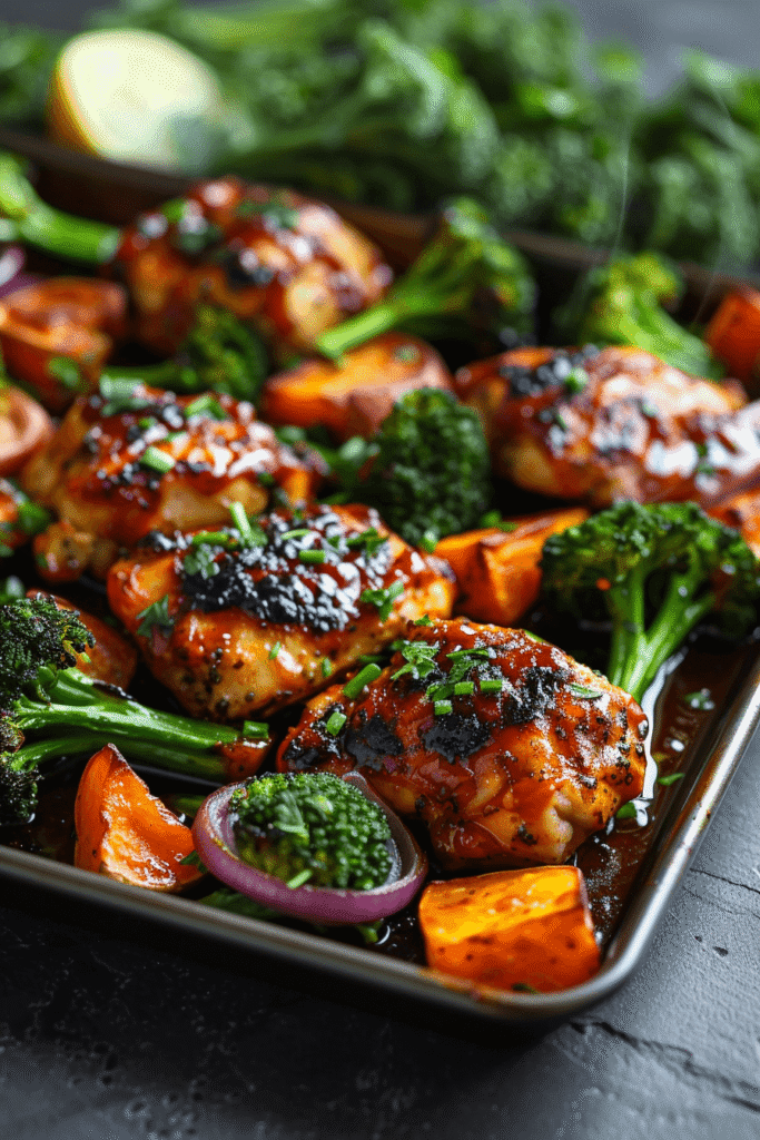 Sheet Pan BBQ Chicken with Sweet Potatoes : Easy Healthy Family Dinner