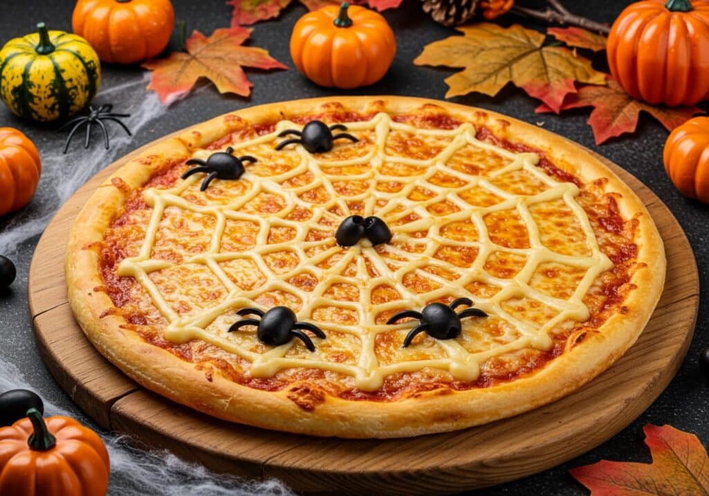 Spider Web Pizza is a creative and visually stunning pizza where mozzarella cheese forms a spider web pattern across the crust, and black olives are sliced to look like spiders perched on the web. It’s a simple spin on traditional pizza but crafted to captivate and entertain while satisfying your hunger. Perfect for parties, family dinners, or themed events, it pairs classic flavors with whimsical artistry.