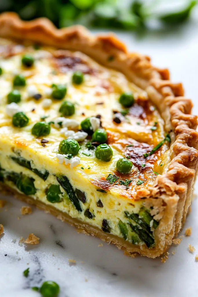 This Spring Vegetable Quiche is a vibrant, creamy seasonal tart packed with fresh asparagus, sweet peas, baby spinach, and tangy goat’s cheese in a buttery homemade shortcrust pastry. Perfect for Easter, spring lunches, and spring party food.