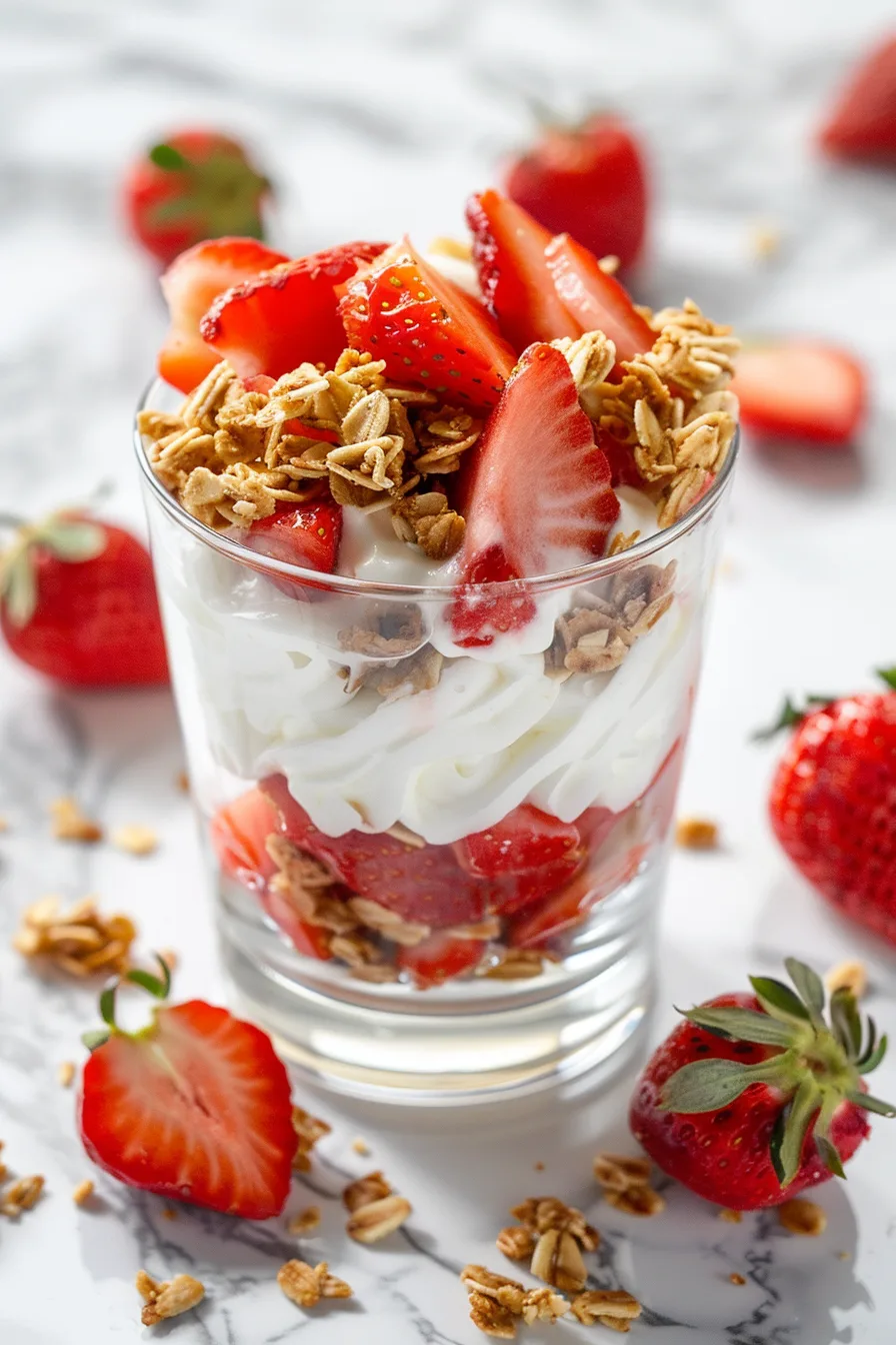 - Add granola: Sprinkle a layer of granola over the strawberries for crunch and texture.