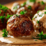 The best part? This entire dish comes together in about 30 minutes of active cooking time. You’ll start by creating perfectly seasoned meatballs using a mixing bowl, then brown them to golden perfection in a frying pan, and finish with a luxurious cream sauce that’s simply irresistible. Serve these beauties over mashed potatoes or buttered egg noodles, and watch your family ask for seconds.
