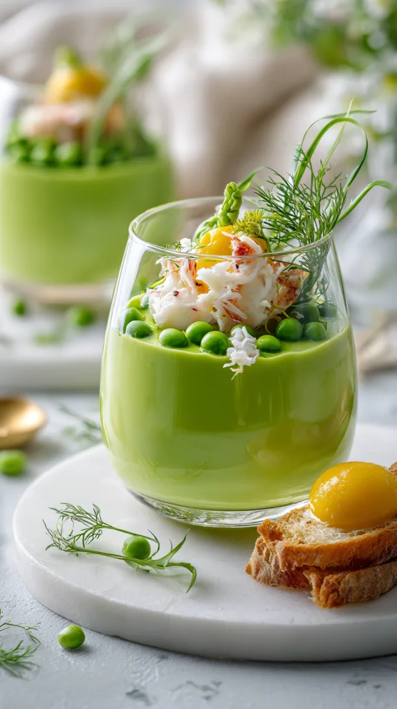 If you are searching for a breathtaking centerpiece for your spring table, this Sweet Pea Panna Cotta with Crab and Cicely, Mango and Dashi Sorbet, and Brown Crab Toast is the recipe you have been looking for. Silky, vibrant, and layered with complexity, this dish brings together the freshness of garden peas, the sweetness of crab, and the brightness of mango in a way that feels both refined and approachable. Whether you are planning an elegant Easter Food Ideas Dinner or a sophisticated Spring Party Food spread, this recipe delivers on every level.
