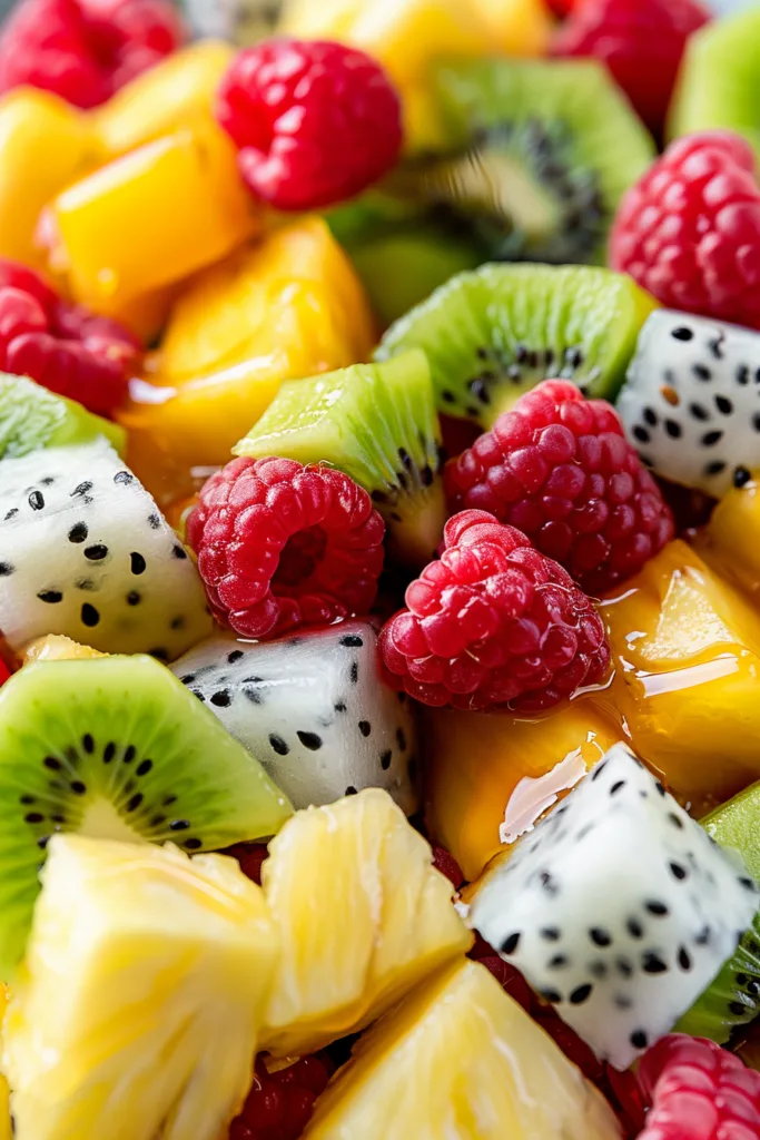 A fresh and colorful tropical fruit salad made with pineapple, papaya, dragon fruit, kiwi, raspberries, and blueberries, all tossed in a zesty honey lime ginger dressing. Ready in 15 minutes and perfect for Mother’s Day brunch or any spring gathering.