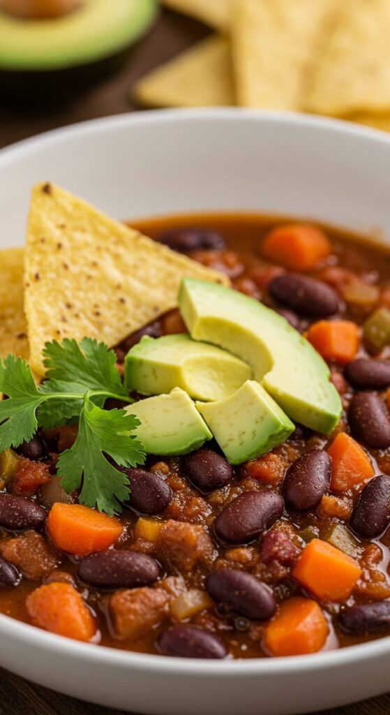 A hearty, plant-based vegetarian chili made with beans, vegetables, and a rich blend of spices perfect for cozy dinners or meal prep.