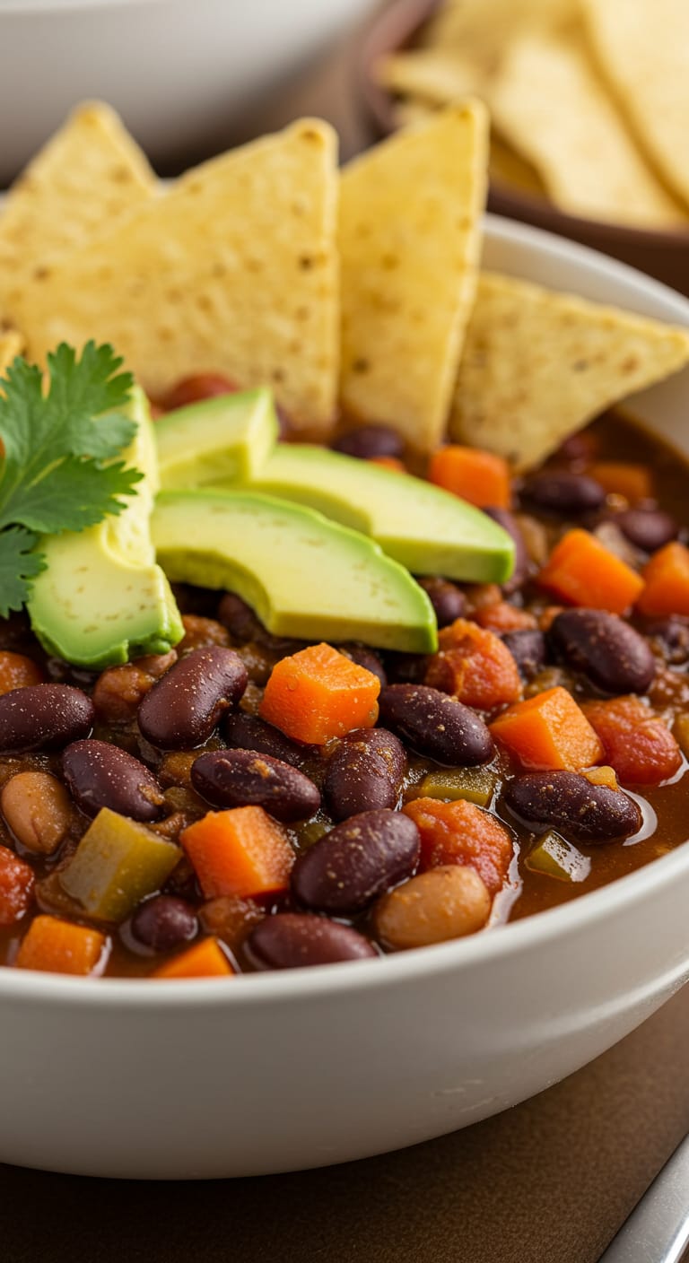 A hearty, plant-based vegetarian chili made with beans, vegetables, and a rich blend of spices perfect for cozy dinners or meal prep.